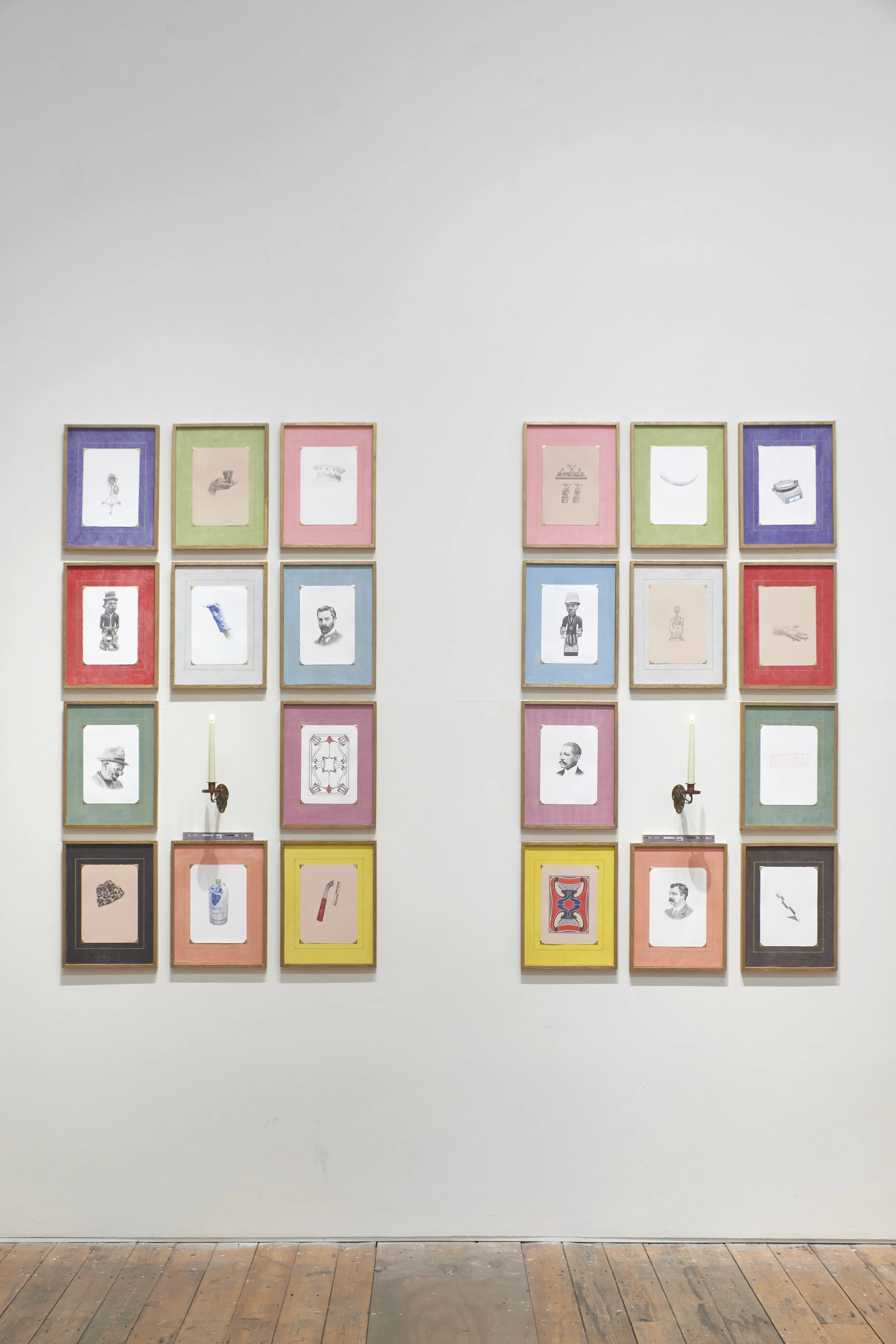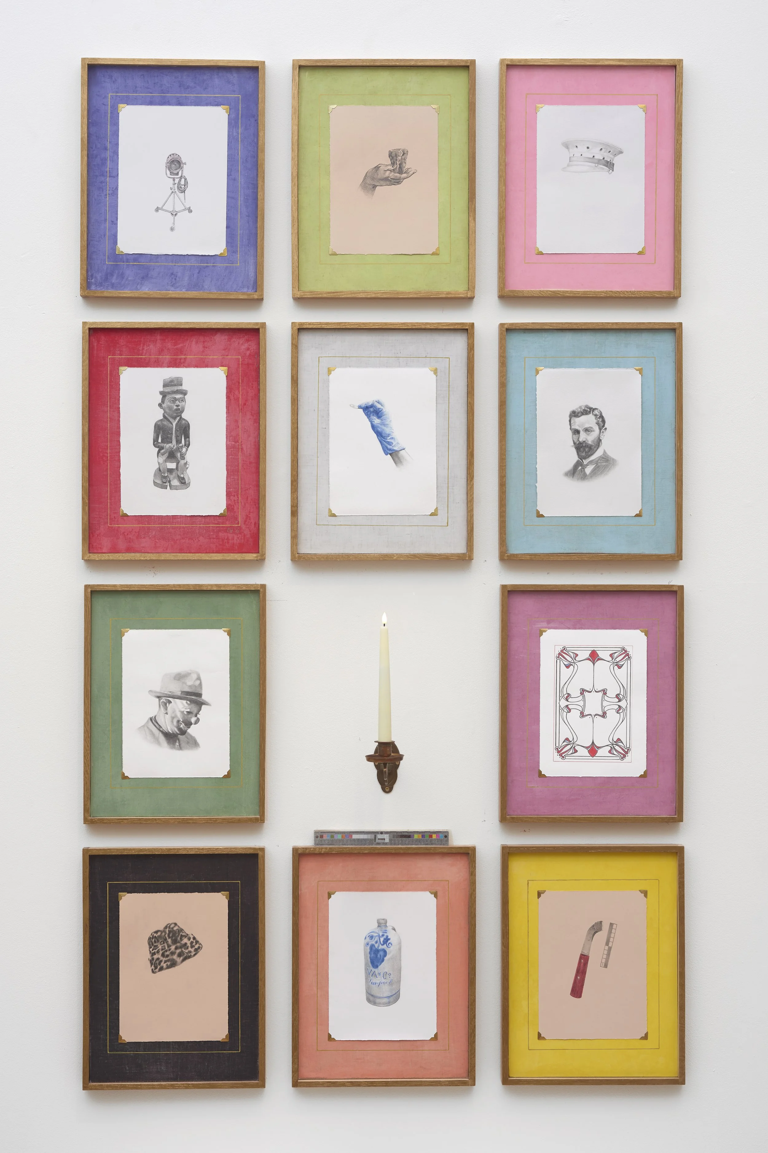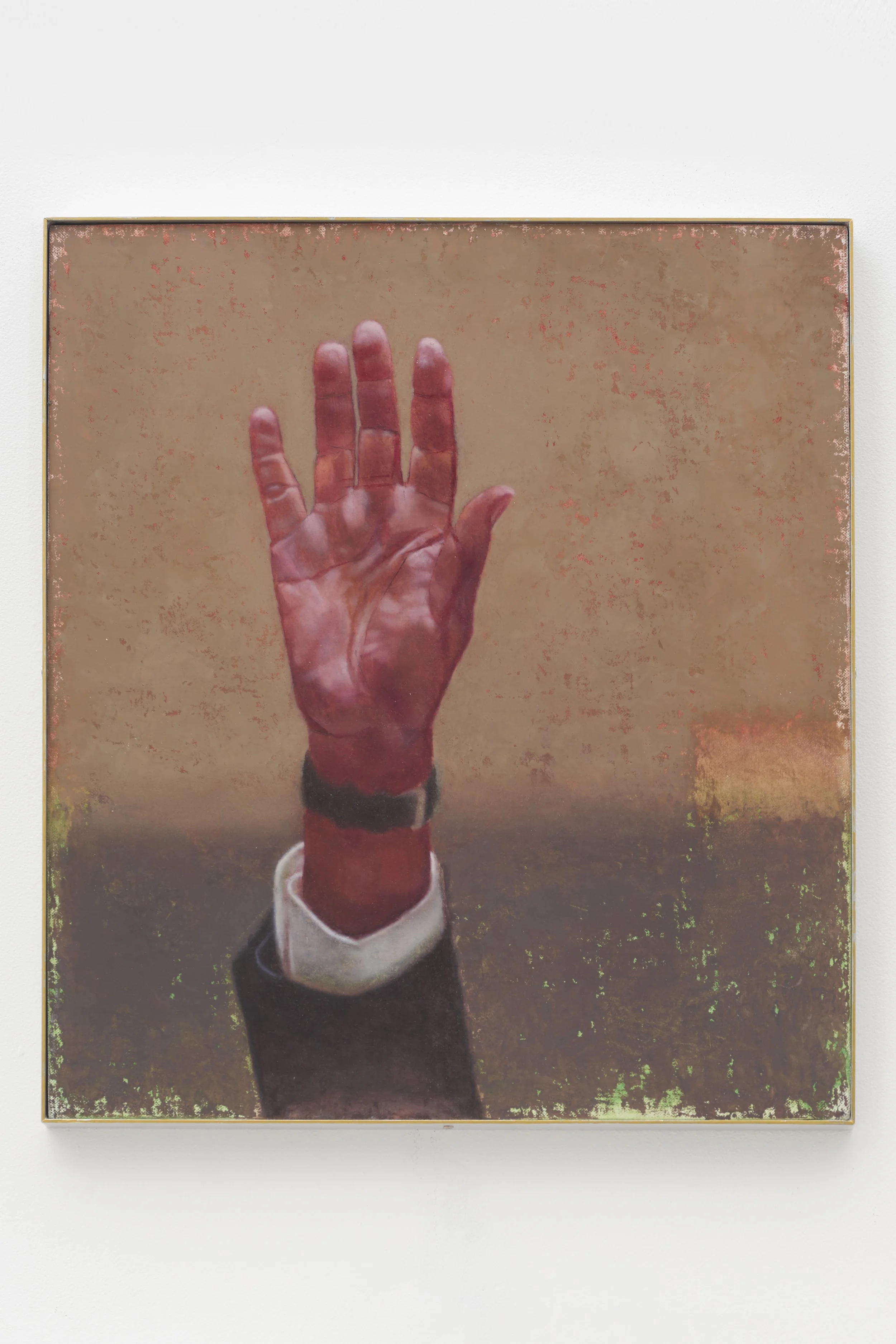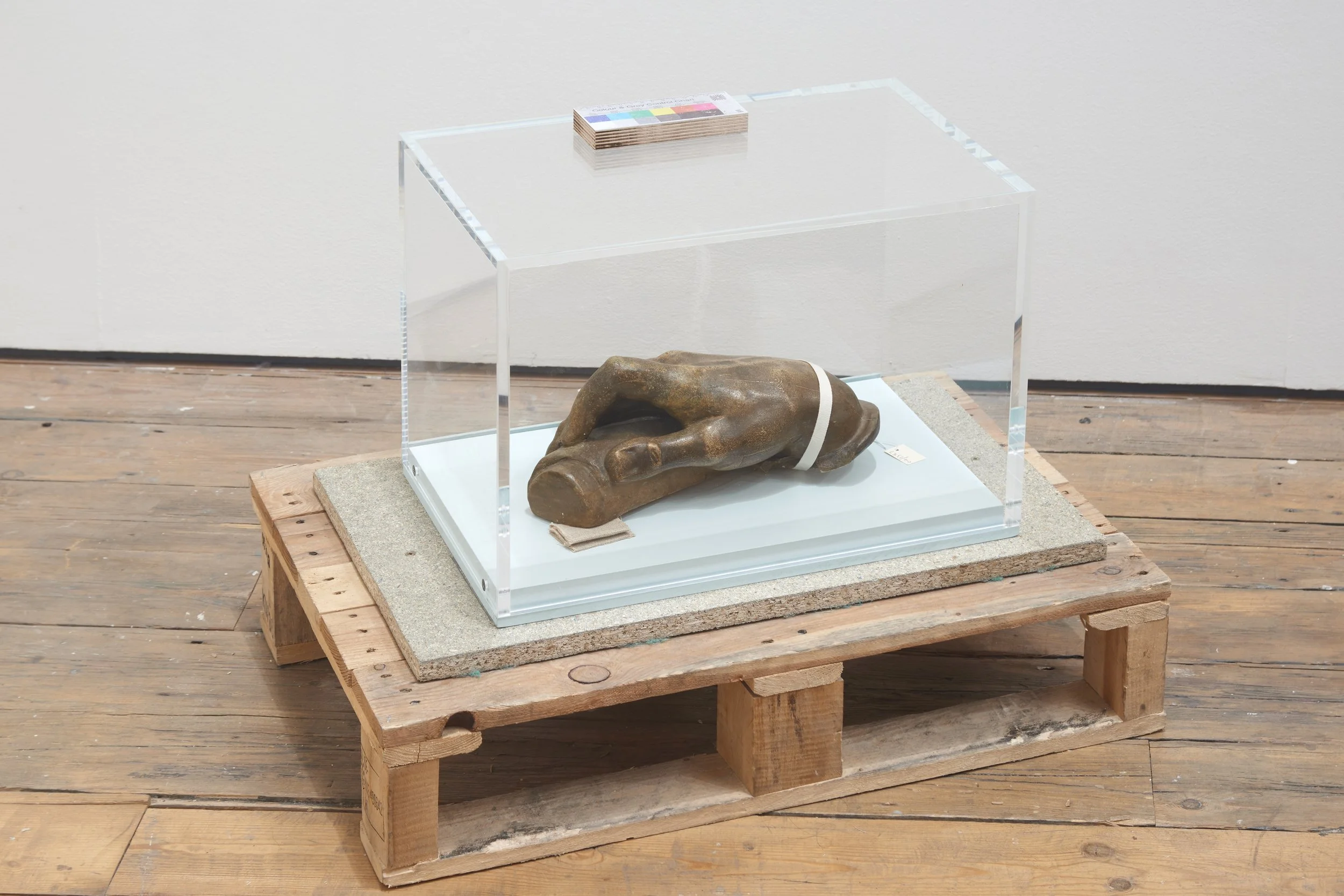 For Hand of Glory Lyndon Barrois Jr. continues to borrow forms from existing scenography, art history, and prop logics of film production to produce what he calls static filmmaking, evoking a sense of the cinematic without moving image. Barrois Jr. alludes to a story of a museum heist as a means of wealth redistribution, thereby absorbing objects and works from museum collections, and fabricating original works in the guise of a copyist. He uses the tools and aesthetics of museum conservation to muddle value, distorting perceptions of what has been forged, restored or newly produced.